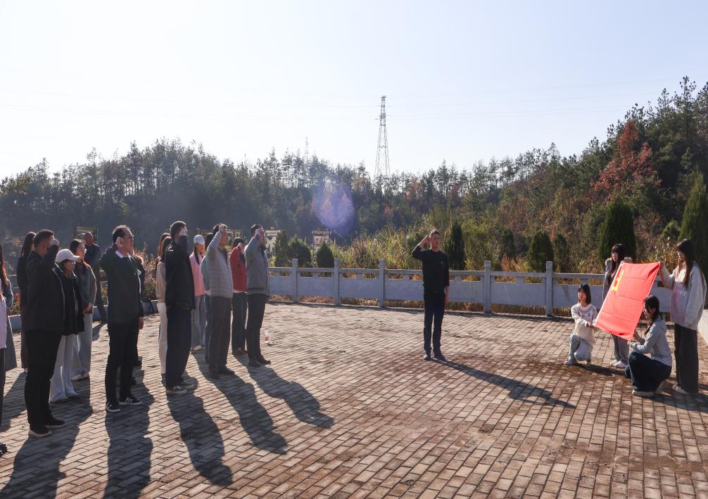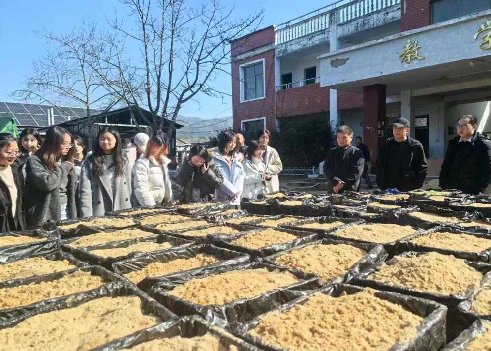 实践研学阶段,师生一行走进英山天麻生产基地,实地学习天麻种植培育工序,深入了解英山天麻特色产业的发展现状与前景。在蔡家畈村烈士陵园、萧伯唐烈士纪念馆,湖北大学驻英山县石头咀镇冯家畈村工作队队长袁勋多个维度介绍“大别山精神”;支部副书记袁新带领师生,重温入党誓词。