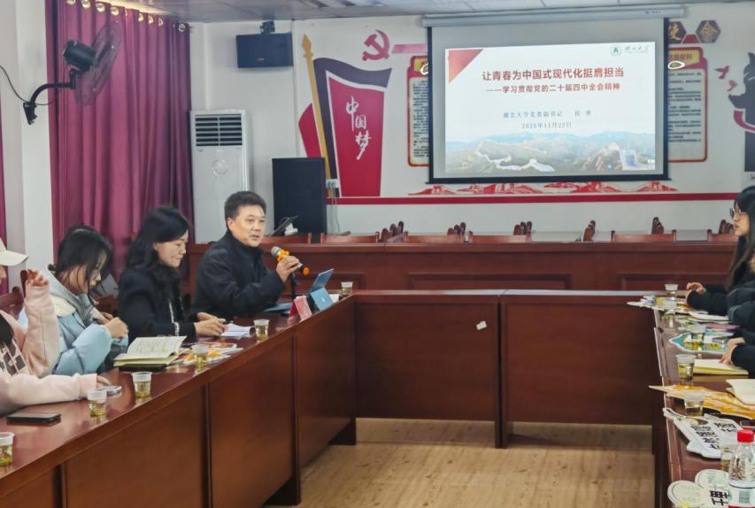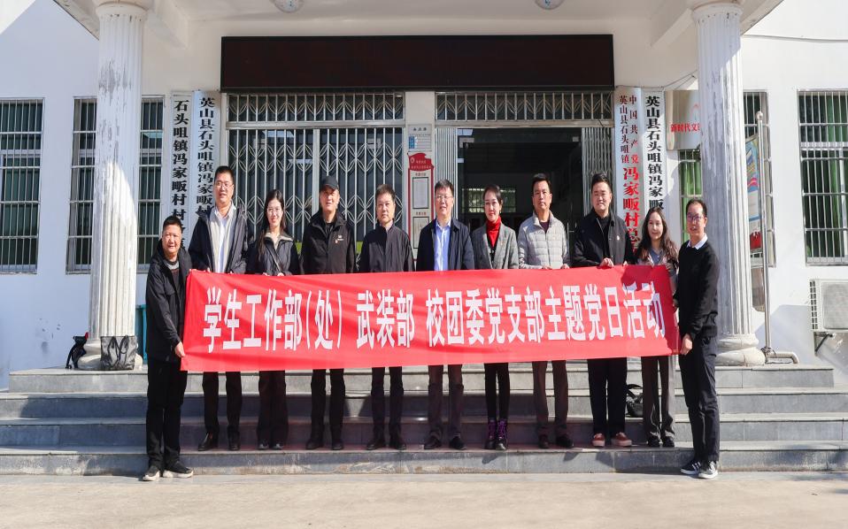 11月22日, 学生工作部(处) 人民武装部 校团委党支部联合艺术与设计学院师生代表,走进黄冈市英山县石头咀镇冯家畈村,开展“弘扬大别山精神,争做新时代思政工作先锋”主题党日活动。校党委副书记侯勇以普通党员身份参加活动,并作学习宣传贯彻党的二十届四中全会精神主题报告。