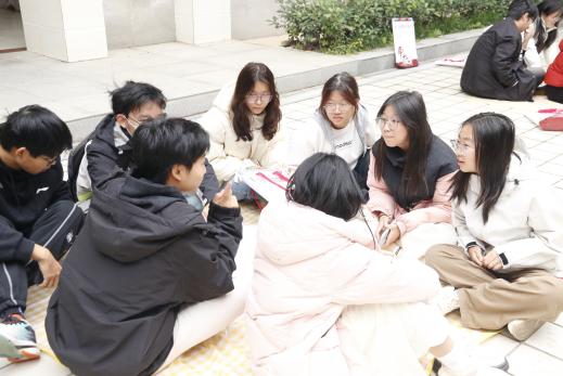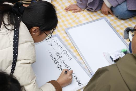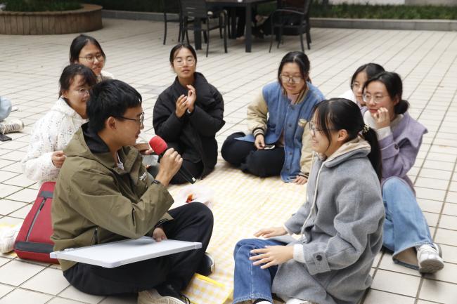 在“家乡传声筒”环节,各小组抽取关于大学生活的指令,从“早八思政课要学习通打卡”到“图书馆有猫学长晒太阳”,涵盖了学业、生活的方方面面。 吴侬软语的温婉、北方方言的爽朗、南方口音的灵动交织在一起,有的小组传递得精准无误,有的却“跑偏”到让人忍俊不禁。这个环节不仅让同学们在熟悉的乡音中缓解了初入校园的陌生感,更在趣味传递中熟悉了大学日常,增强了对普通话的重视。