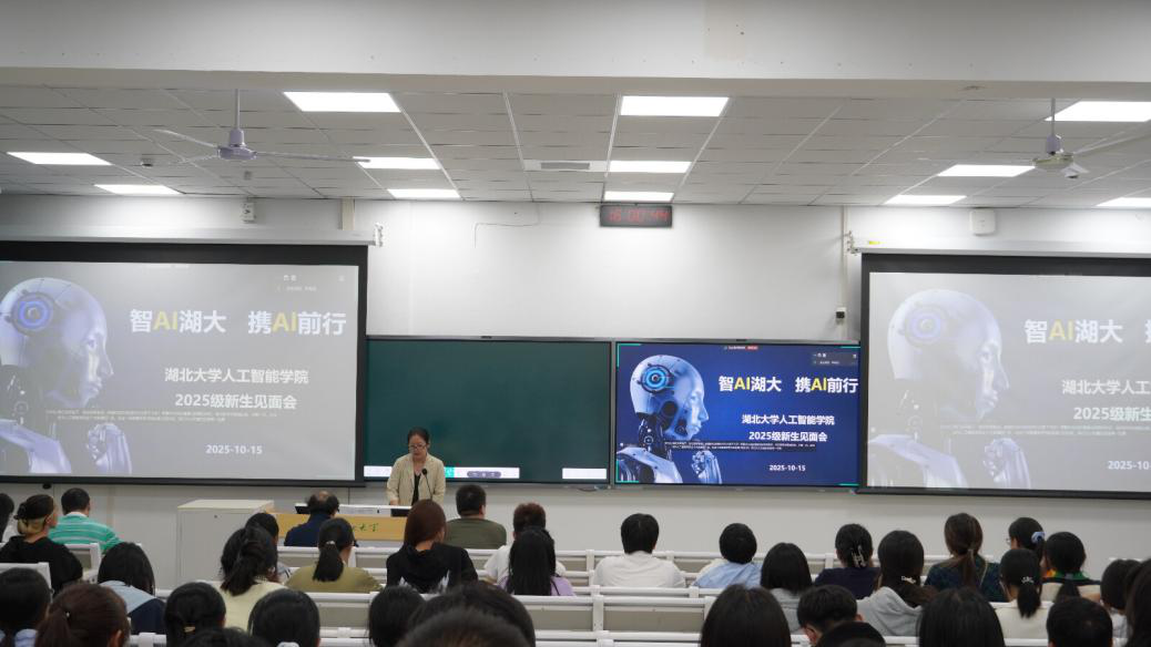 10月15日下午,人工智能学院在长江新区校区举办2025级新生见面会暨新生开学第一讲活动。活动以“智AI湖大,携AI前行”为主题,同时邀请创新创业学院院长夏晓红莅临指导,人工智能学院副院长,党委副书记,系部主任,辅导员及优秀学生代表齐聚一堂,与2025级全体新生共同开启大学成长新篇章。